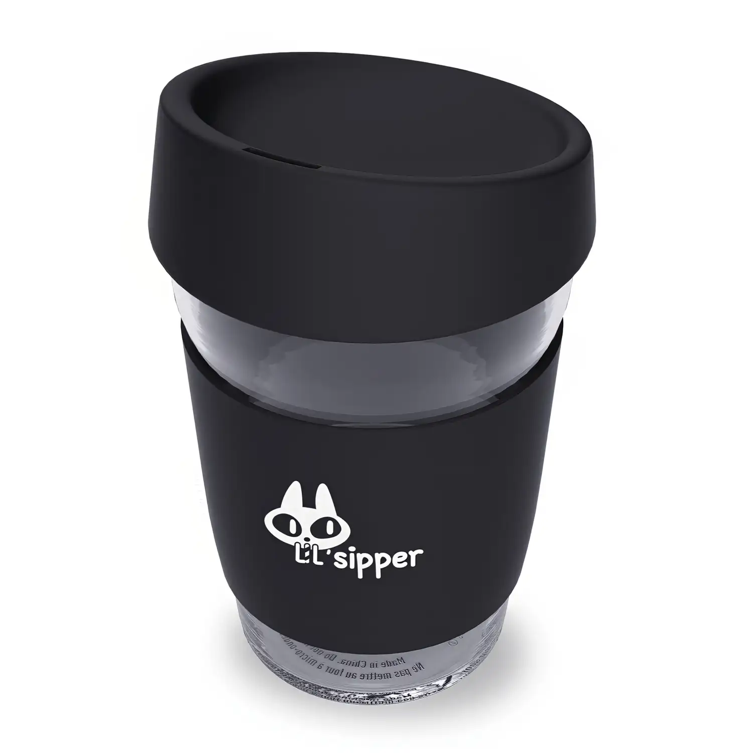 The 360 mL / 12 oz Lil' Sipper is a cup made from durable, high-quality borosilicate glass that is resistant to thermal shock and scratching. It features a silicone sleeve which provides an extra layer of protection and comfort while sipping from the dishwasher safe push on color-matching silicone lid. Optional personalized gift box.