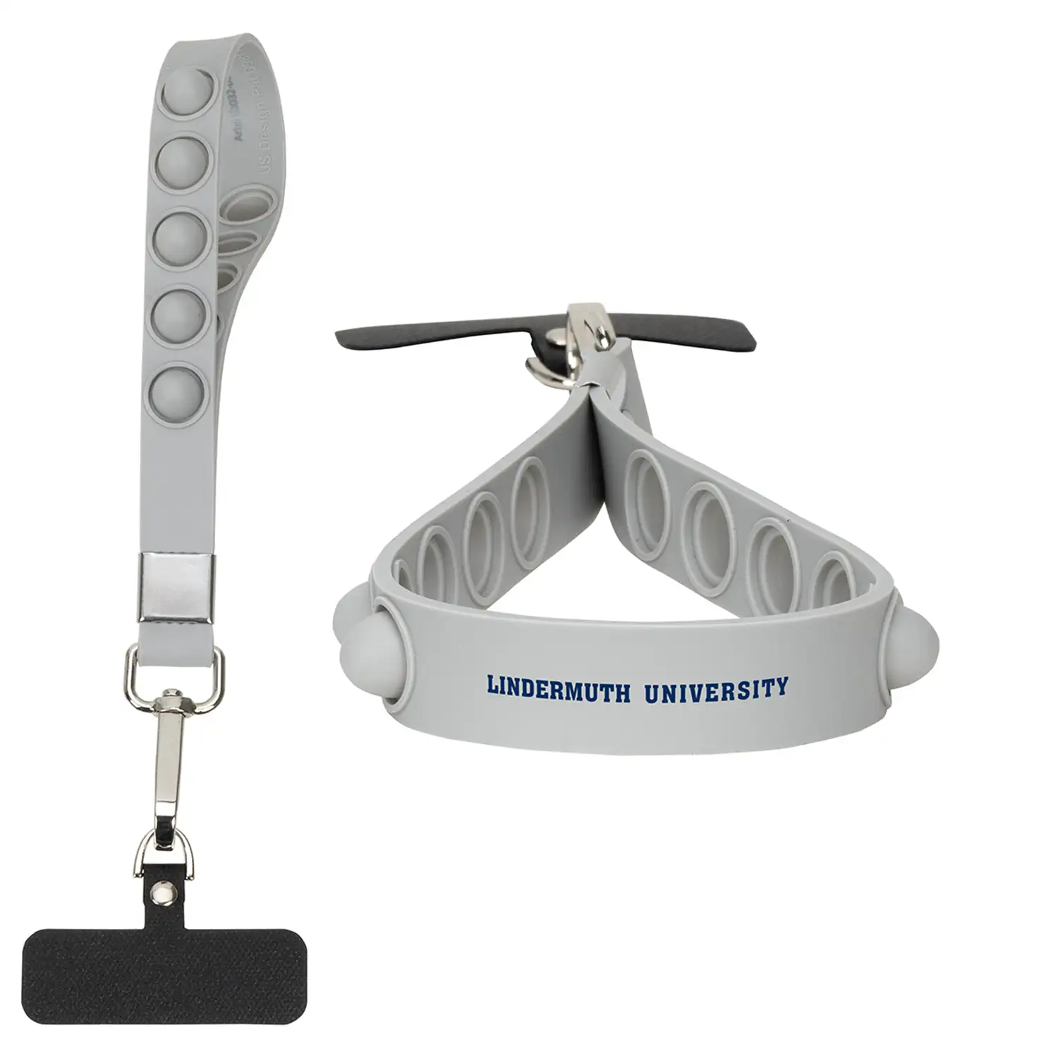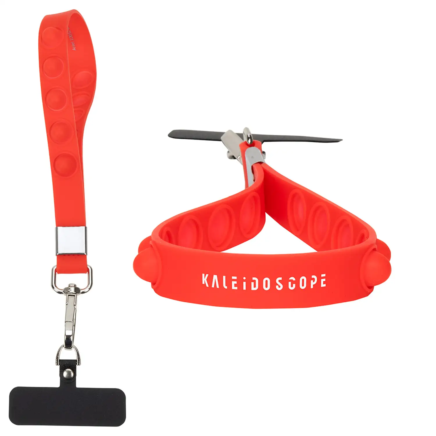 Combines a stress-relieving pop bubble feature with a practical wristlet for phones and keys.