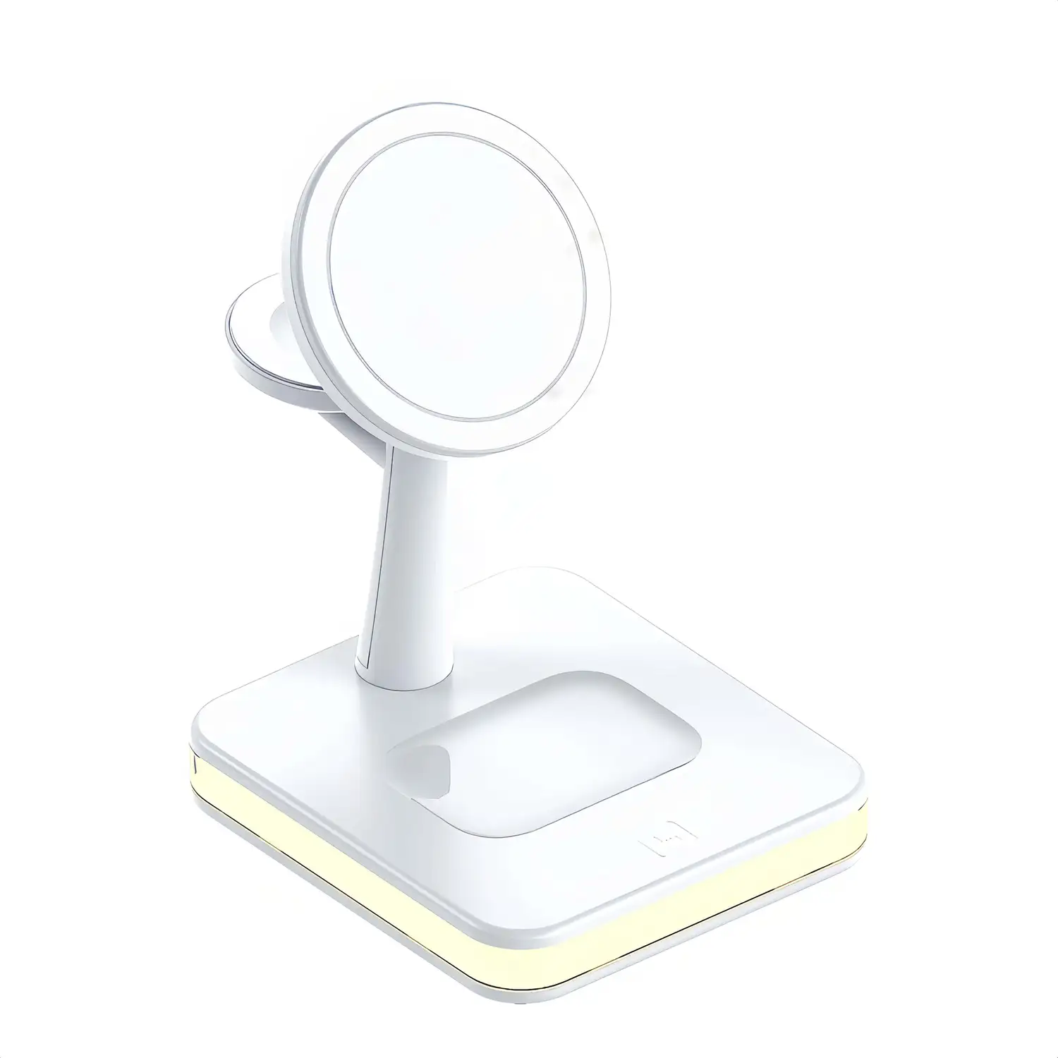 3-in-1 Vertical Magnetic Wireless Charger with 2-Level Night Light & 15W Fast Charge.