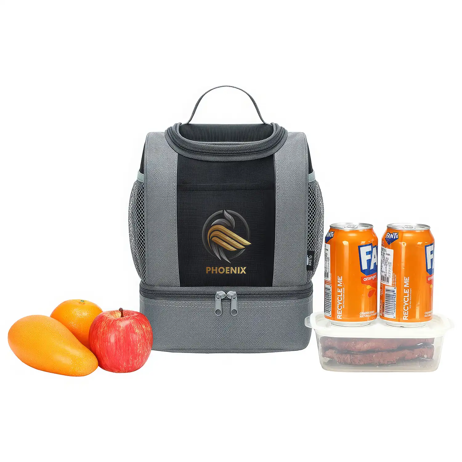 Insulated with EPE foam and lined with PEVA to help keep food and beverages hot or cold for approximately 4–6 hours