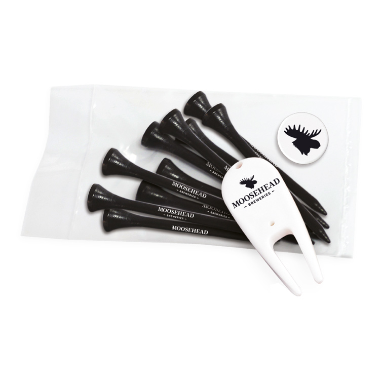 Bag of 10 tees with 1 marker and 1 Divot Fixer.