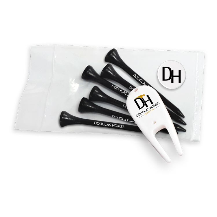 Add a logo to this Bag of 6 Tees with 1 Marker and 1 Divot Fixer.