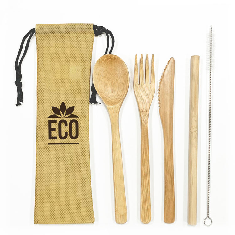 Add your logo to this Bamboo Utensil and Straw Set.