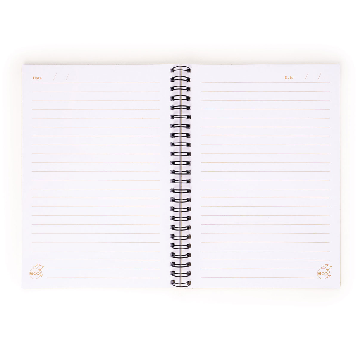 The A5 size journal has 120 white lined pages with a date feature that are made from 100% recycled paper.