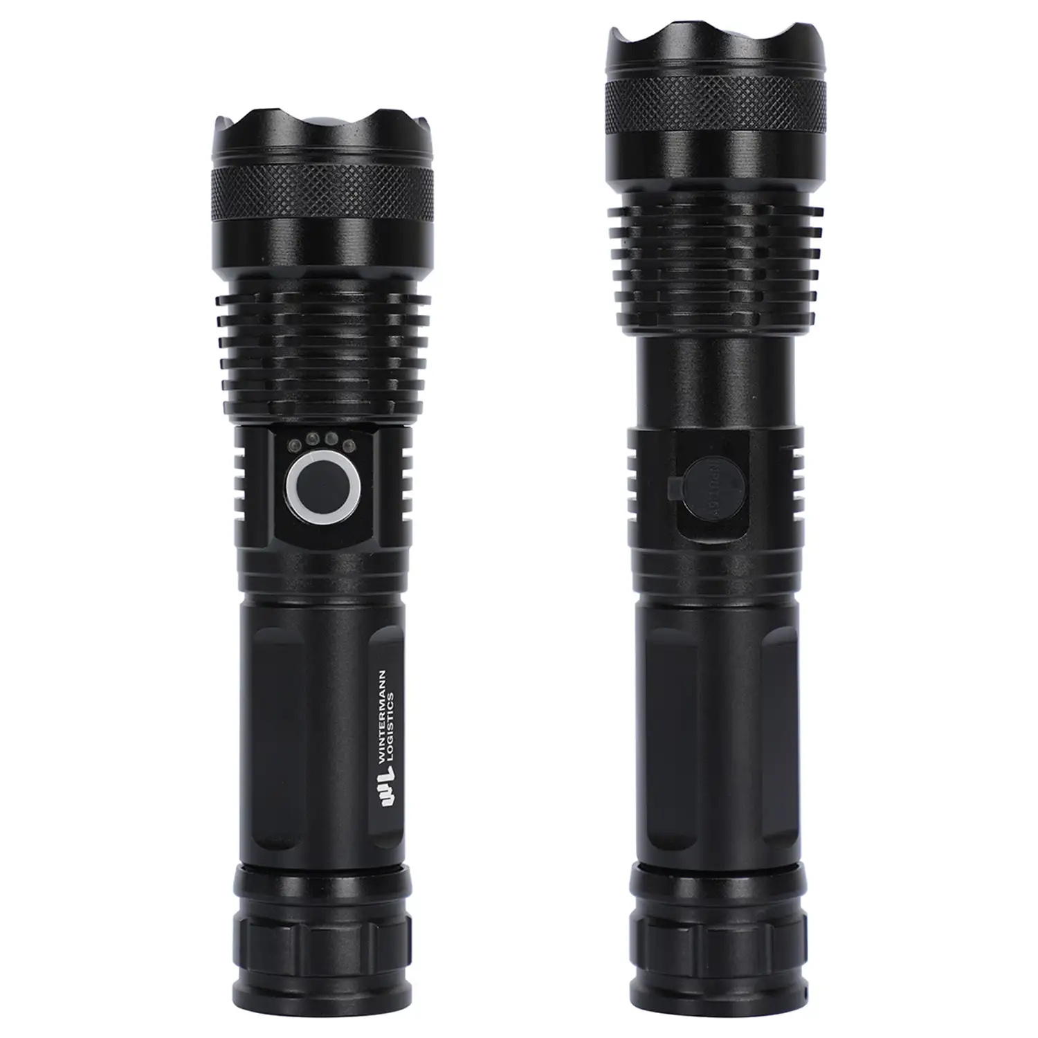 High-power 10W rechargeable LED flashlight with 500 lumens for bright illumination.