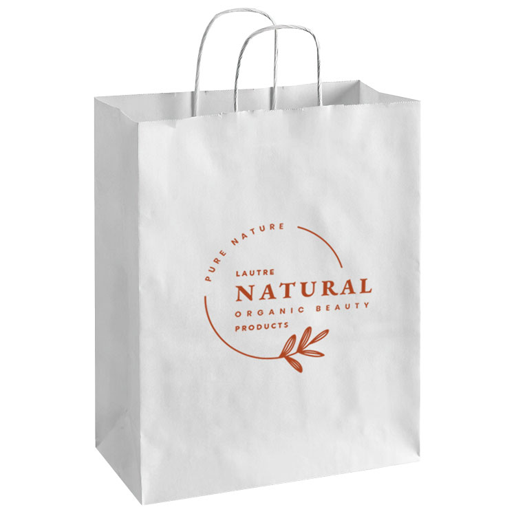 Strong twisted paper handles make purchases easy to carry.