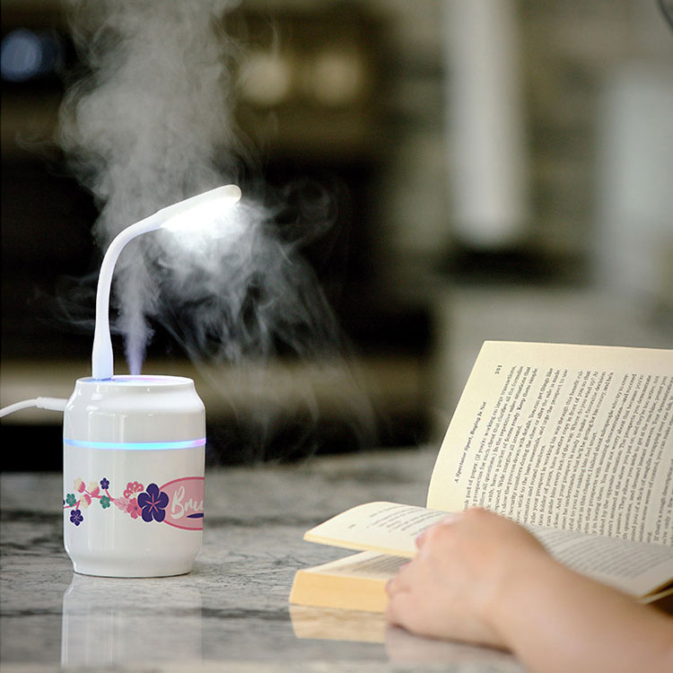 Desktop humidifier with USB Light and Fan accessories.
