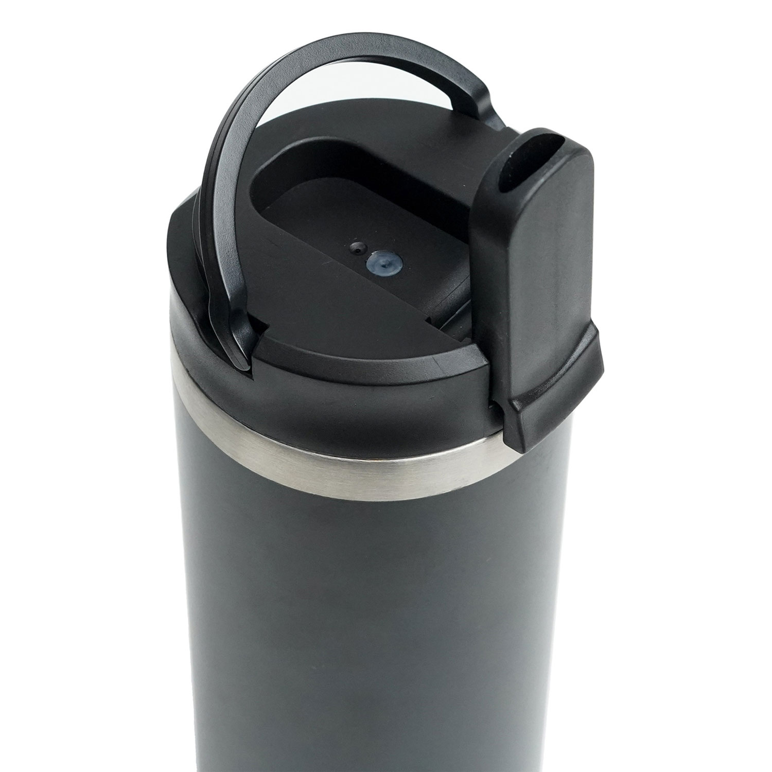 Made from matte double walled stainless steel this bottle is equipped with a top carry handle and flip-up straw.