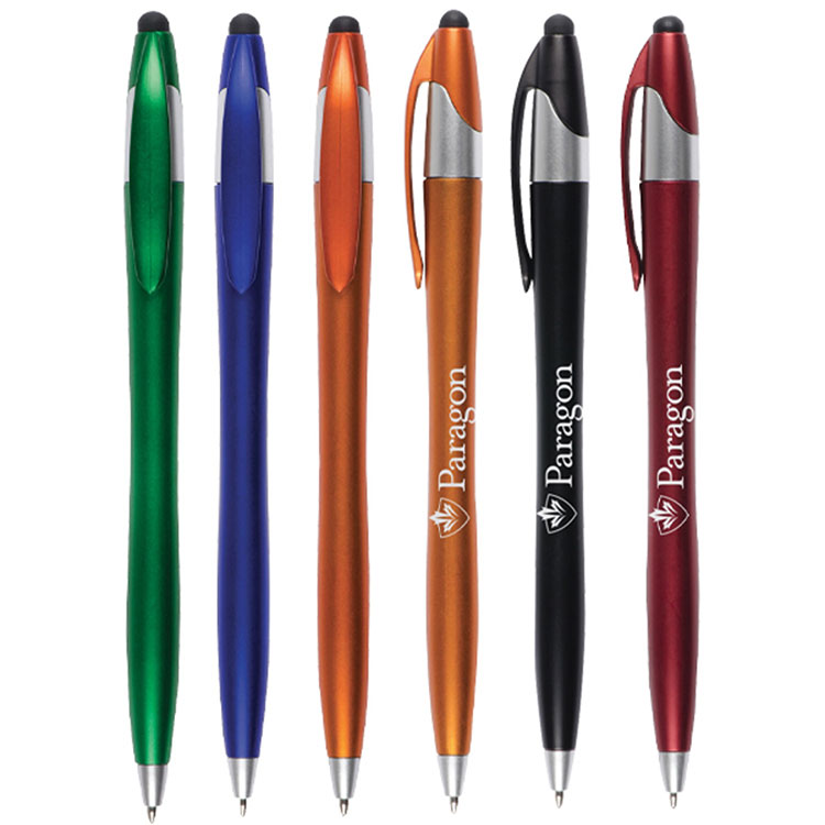 Add a logo to this Charleroi Plastic Pen with Stylus. Minimum Order Quantity 400 pieces.