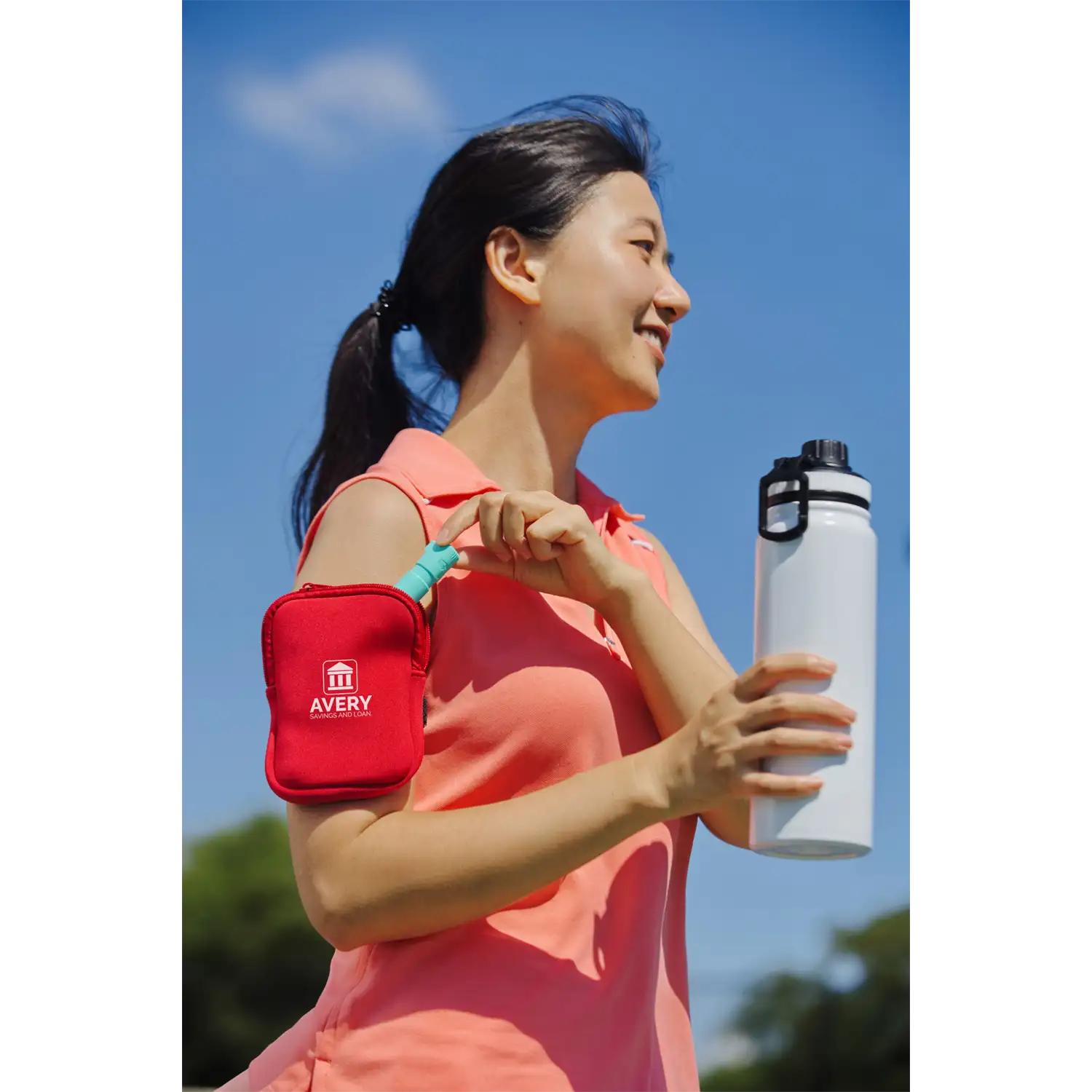 Adjustable belt with hook-and-loop closure that ensures a secure fit around most mugs, providing easy portability.