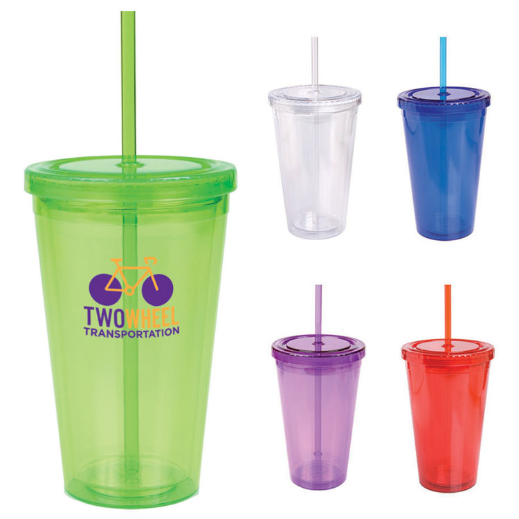 16 oz (470 mL) BPA-free double wall Acrylic tumbler with matching color rigid straw included (9").
