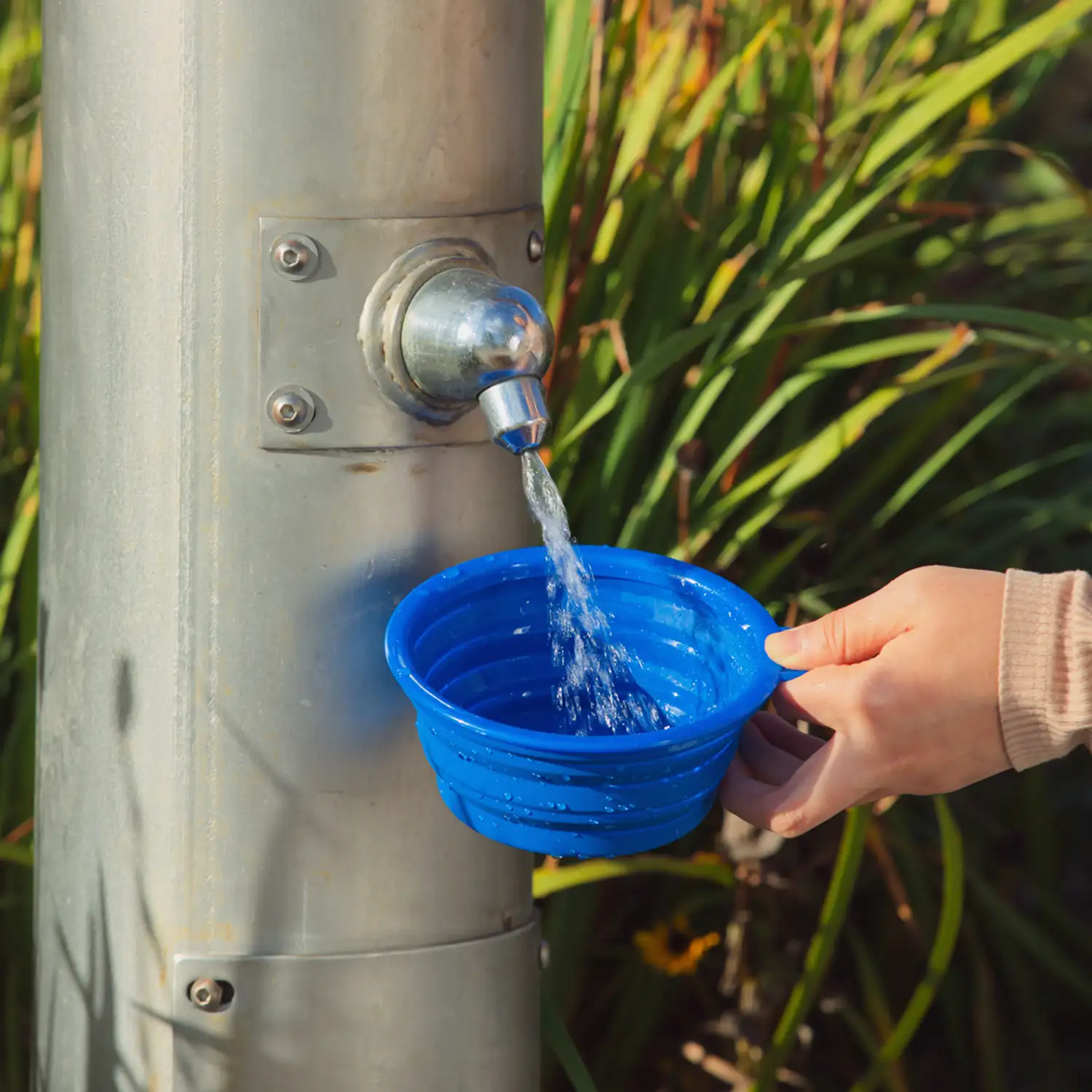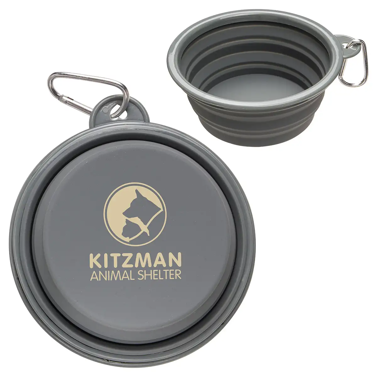 Pack and go with our compact silicone collapsible pet bowl with metal carabiner.