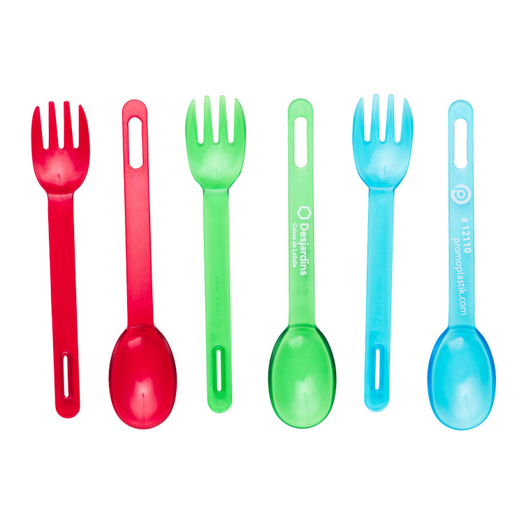 Plastic spoon and fork set.