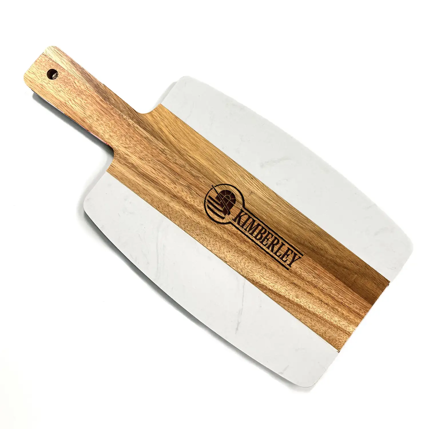 Promote your brand with the Marble and Wood Serving Tray with Handle.