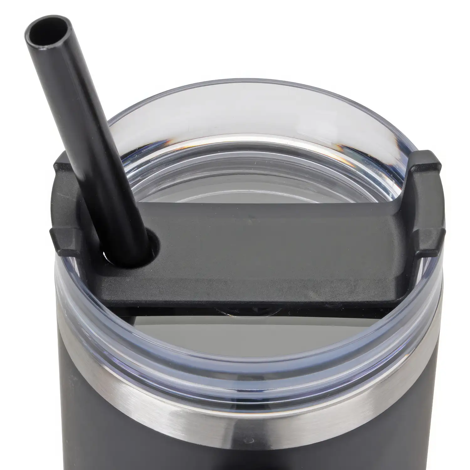 Black swivel top with three positions: straw opening, drink opening and a full-cover top.