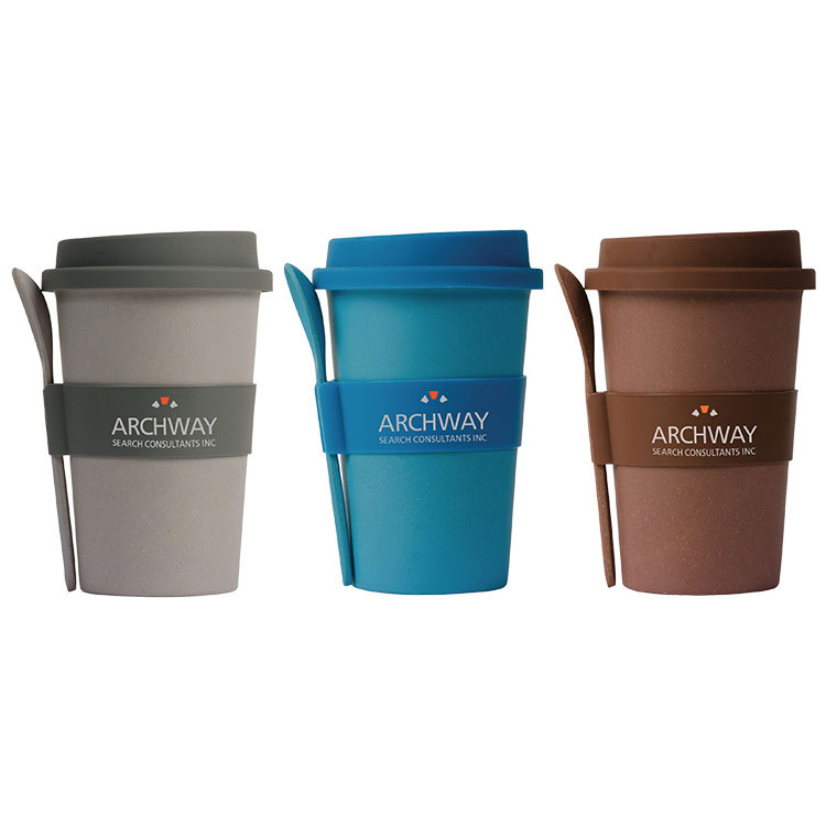 Add a logo to this Mug with Silicone Cover and Spoon.