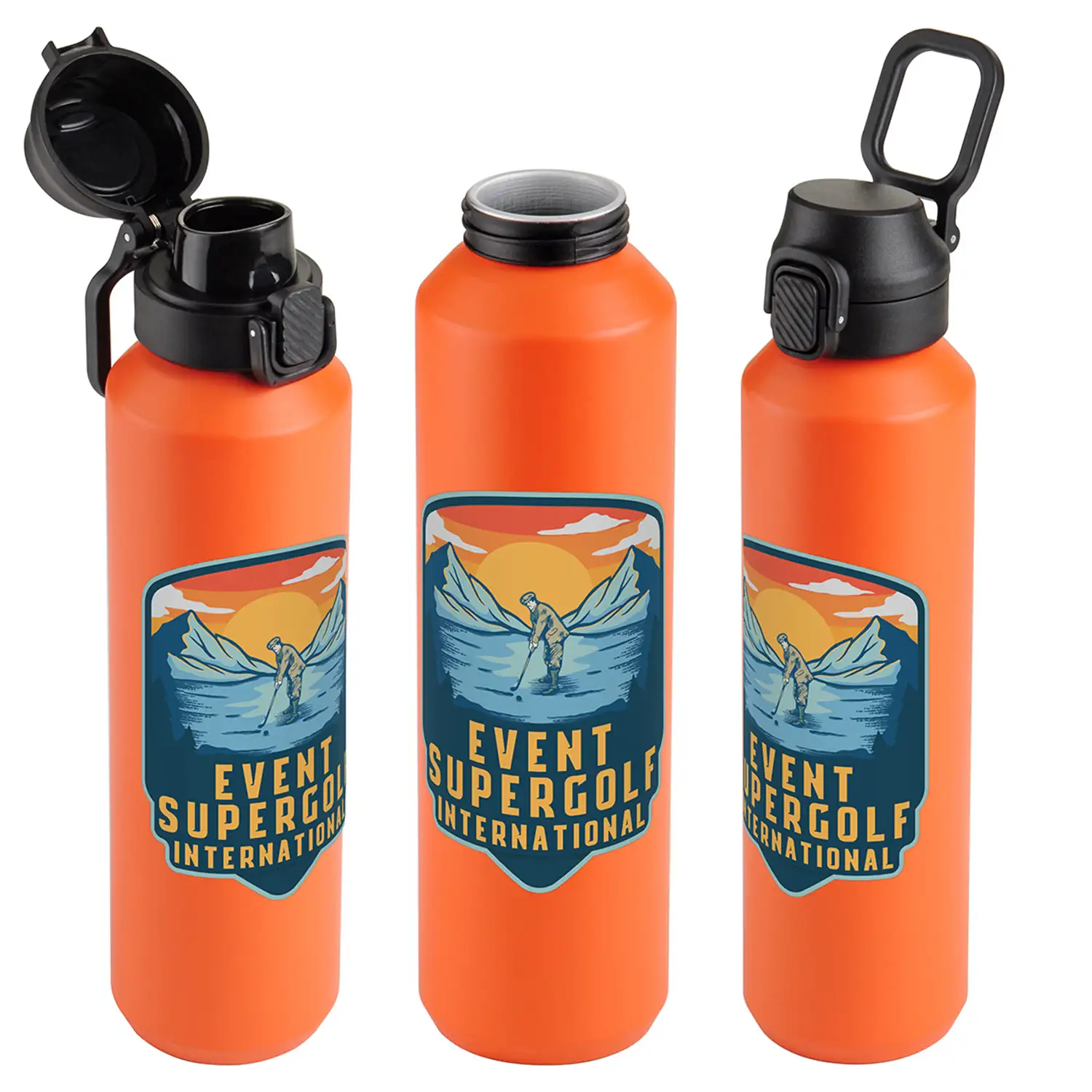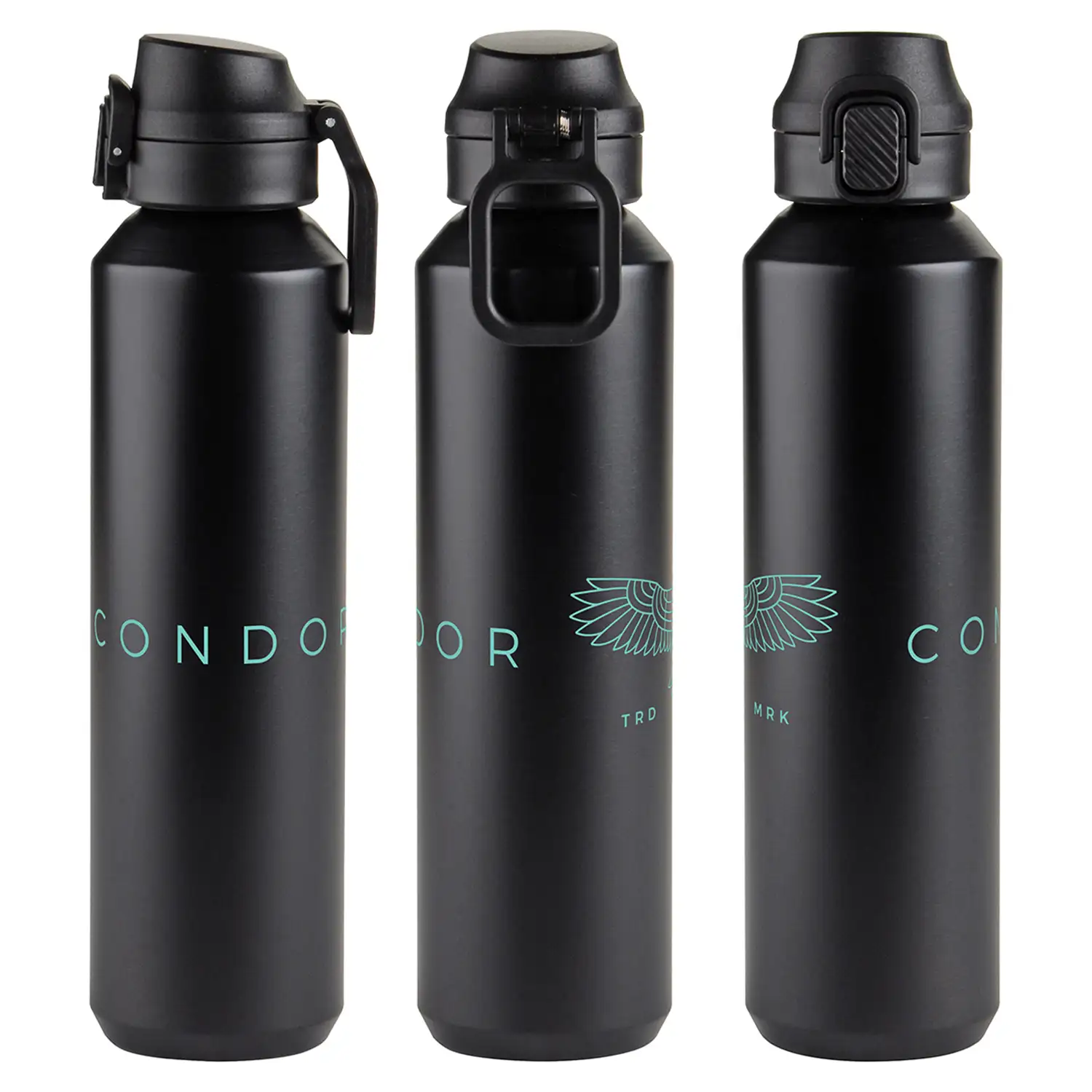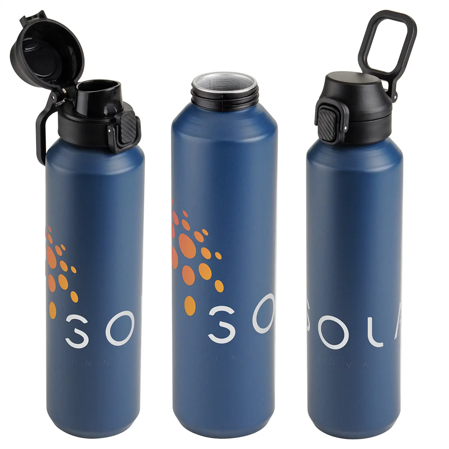 Promote your brand with the Nexus 27 oz Recycled Aluminum Bottle with Flip-Top Lid and Carabiner.