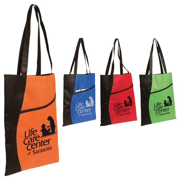Non-woven handy tote bag made of polypropylene.