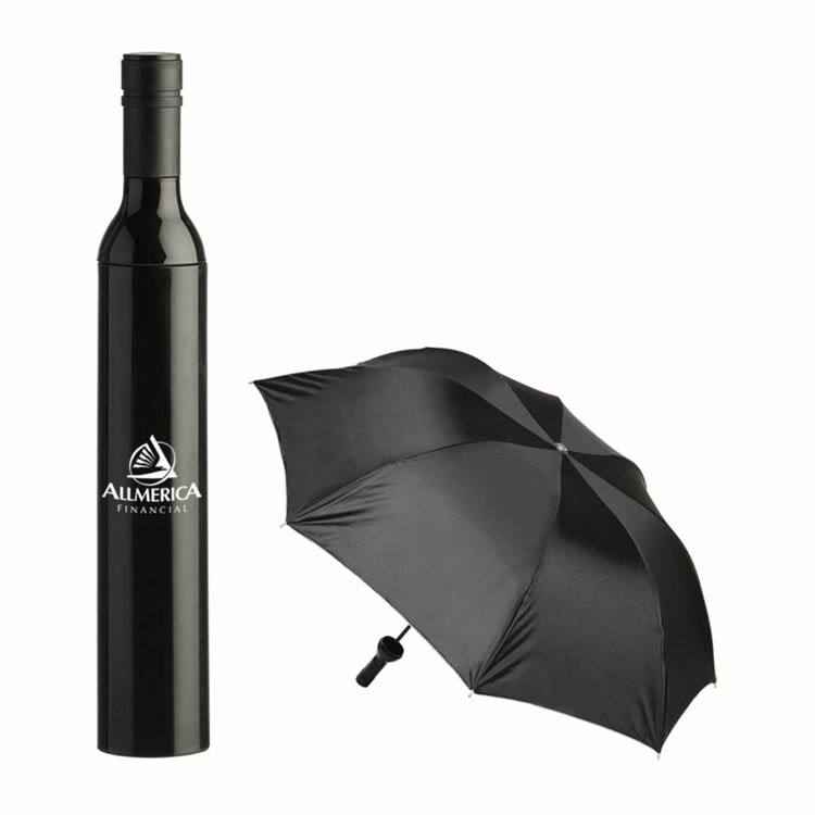Make an impression with this stylish umbrella in faux wine bottle.