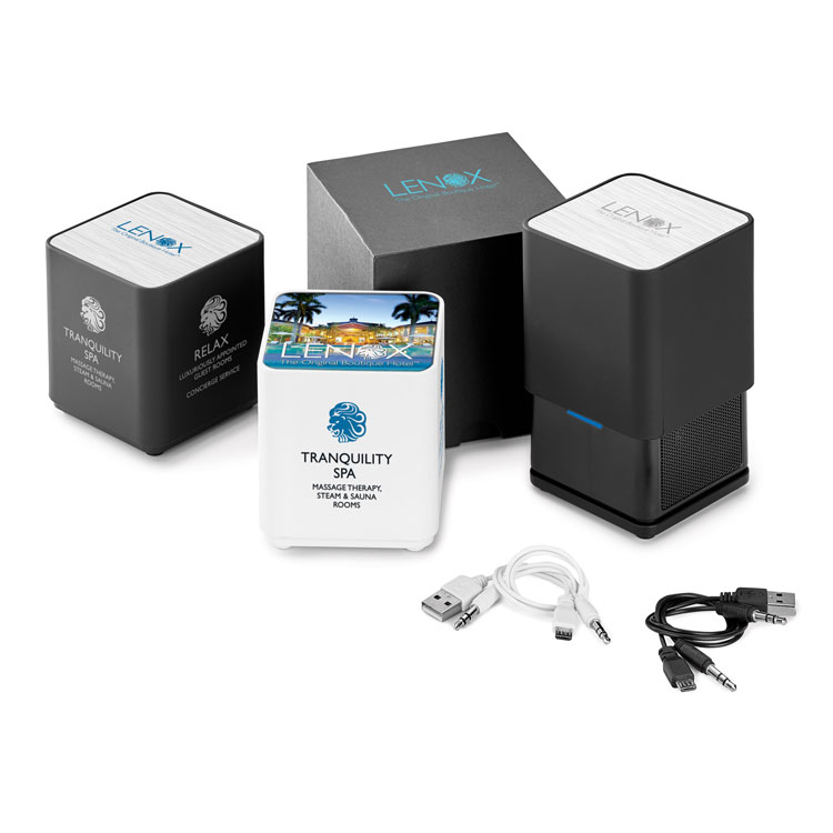 Pop-it-up for great stereo sound anywhere and decorate all sides for branding messages everywhere.