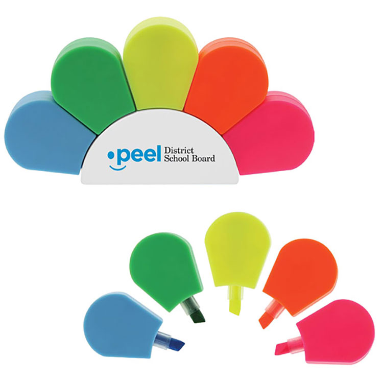 White with Yellow, Blue, Green, Red and Orange Highlighters
