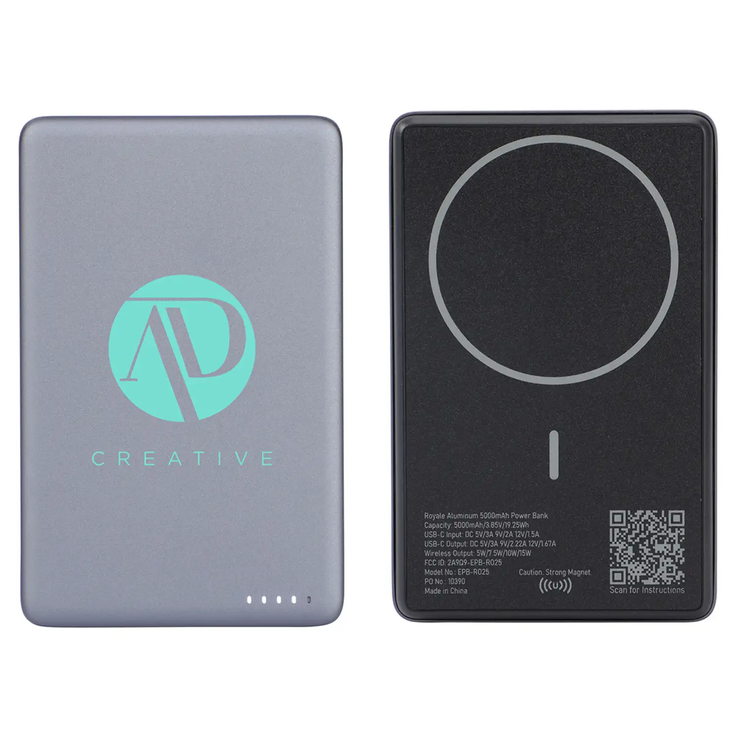 Promote your brand with the Royale Aluminum 5000mAh 20W Power Bank with 15W Magnetic Wireless Charger.