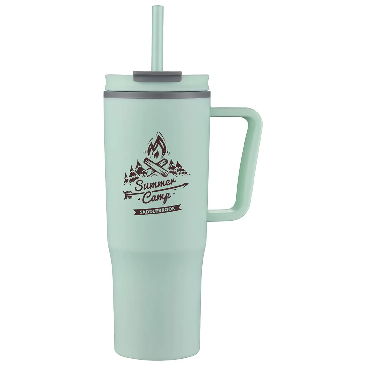 Color matched plastic handle and straw with ring to keep inside.