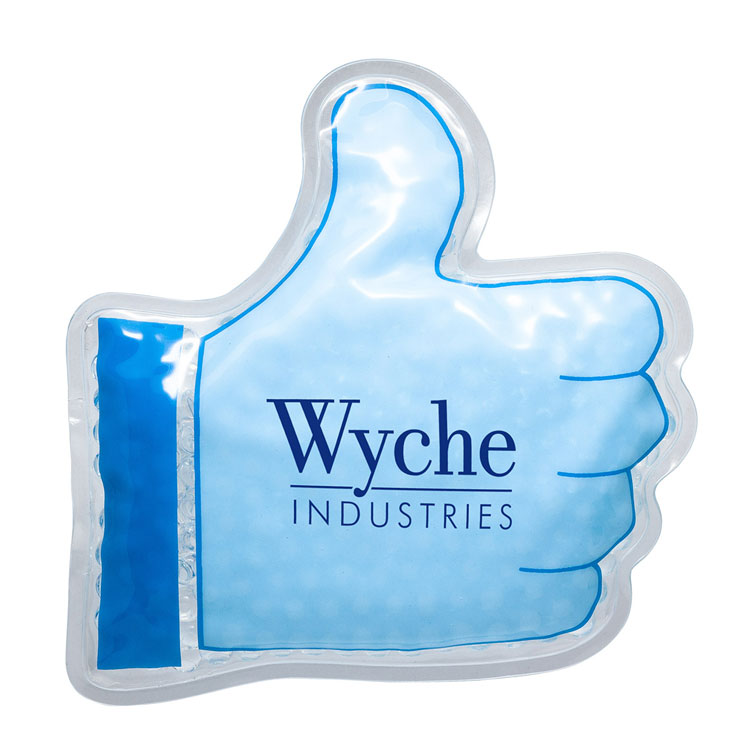 Thumbs Up shaped Aqua bead gel therapy pack.