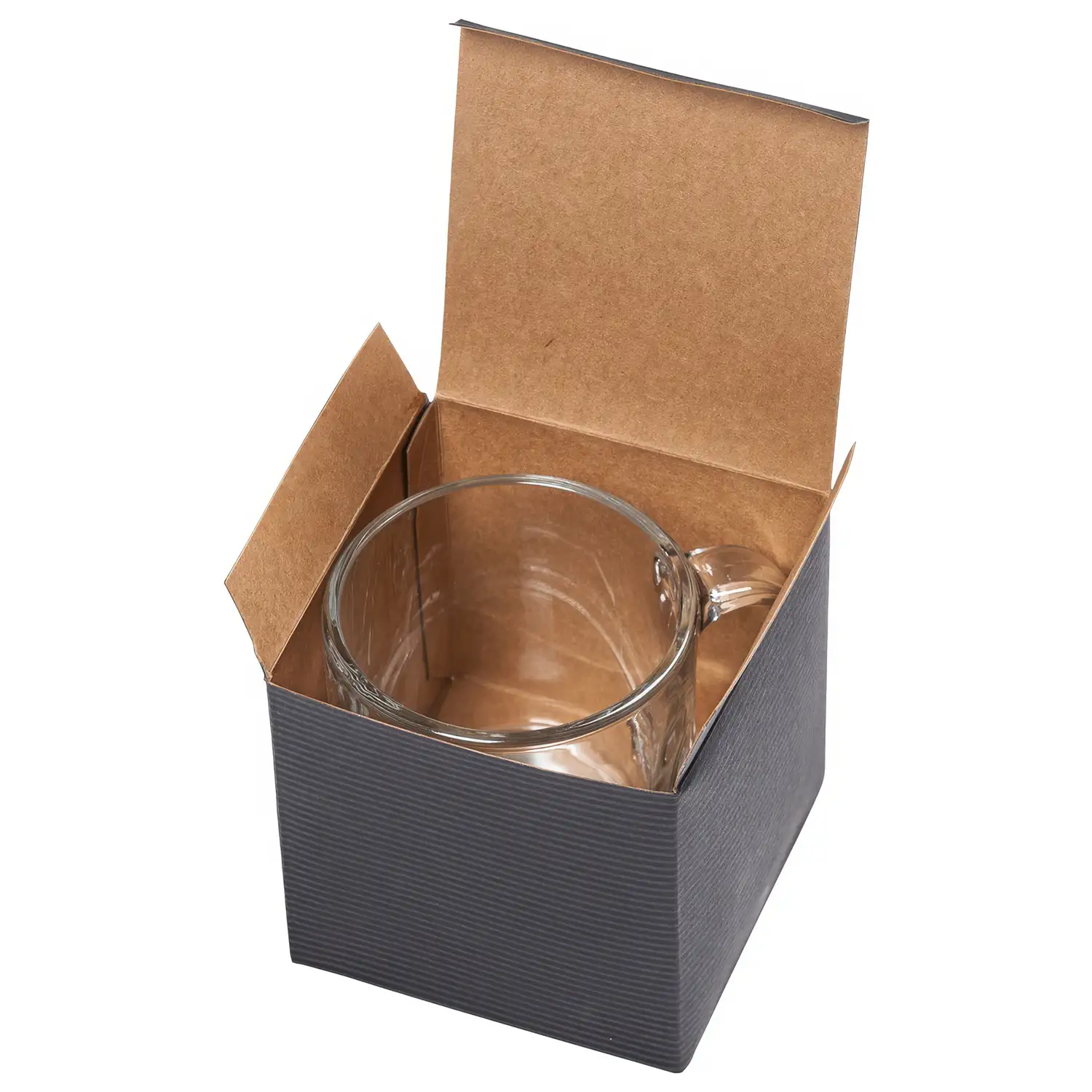 The Trenton mug is a glass rendition of the classic mug with a low silhouette to compliment any coffee drink with character.
