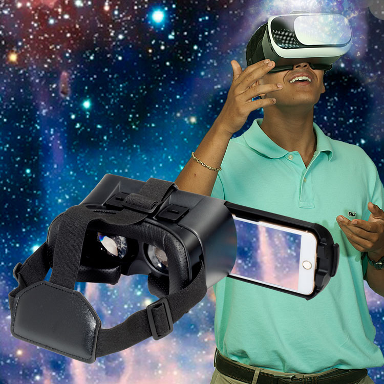 ABS Plastic virtual reality headset with adjustable elastic headband.