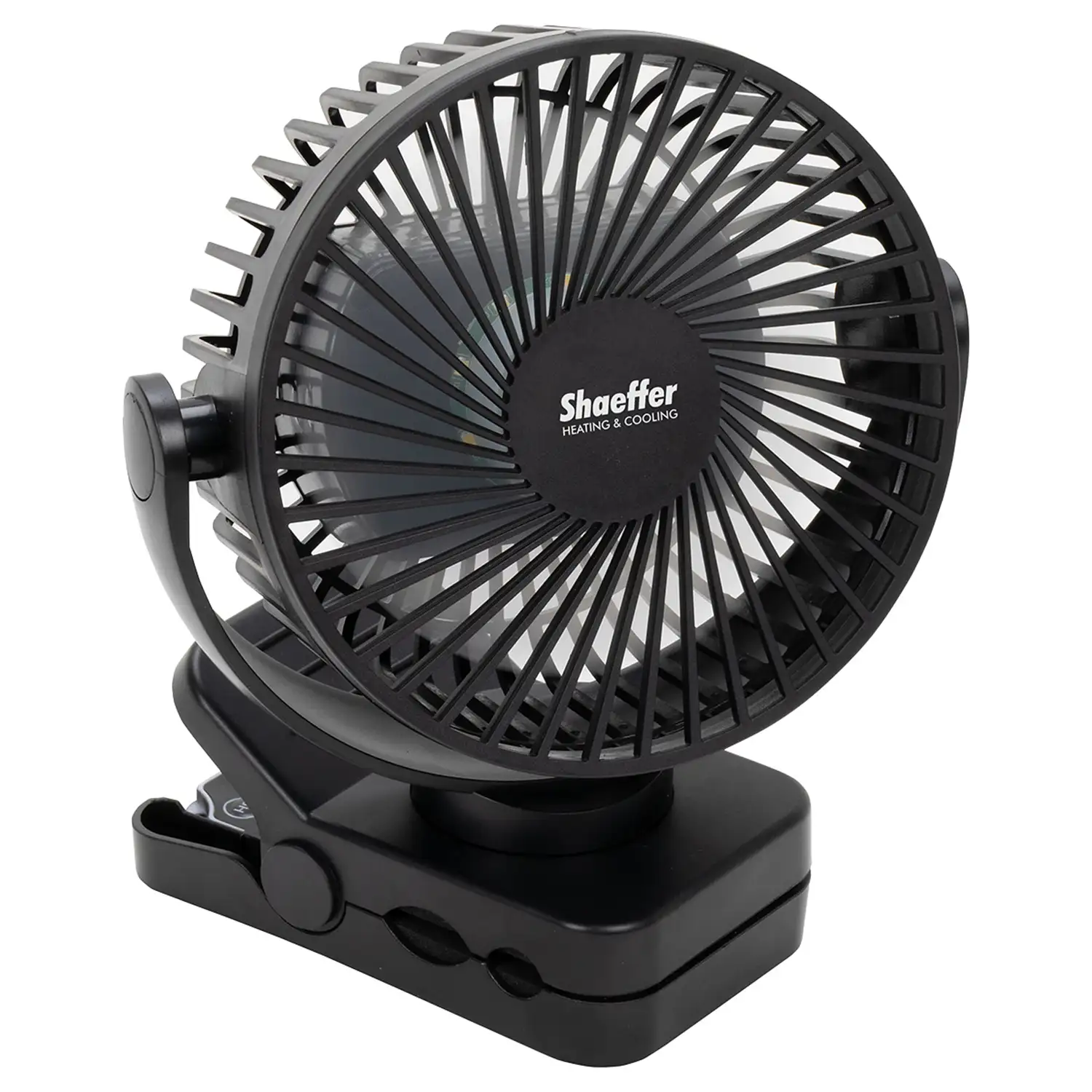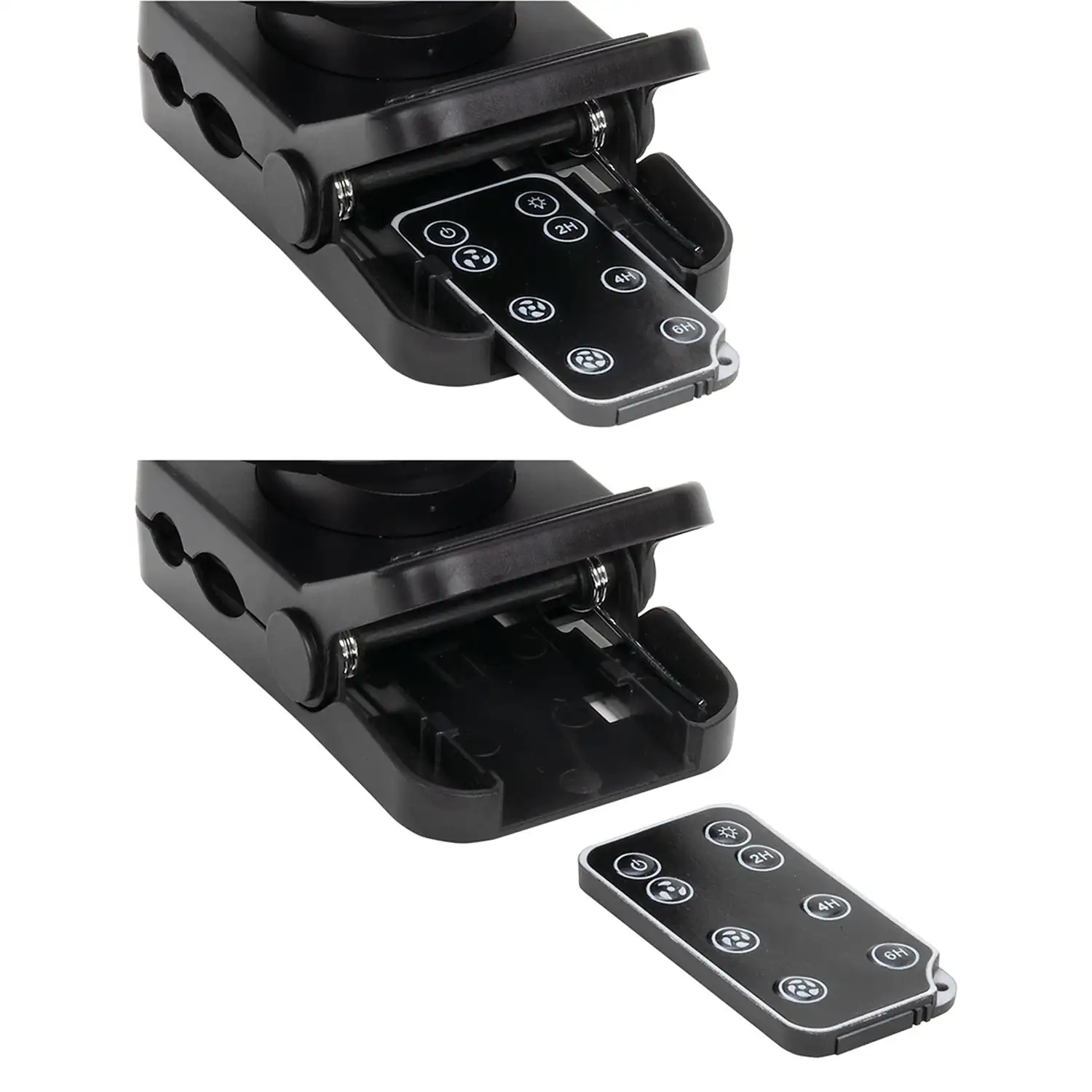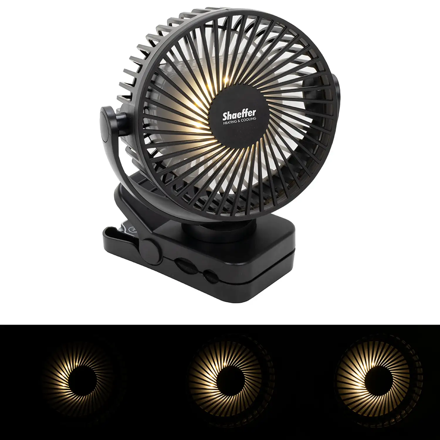 Compact 5" portable fan comes with a remote to control fan speed and light brightness.