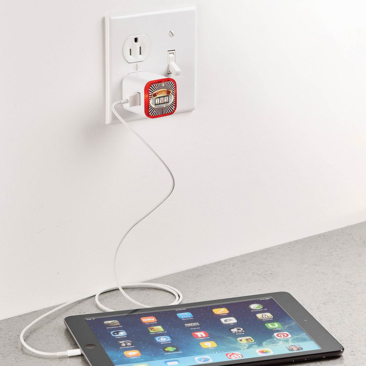 With foldable pins, it fits conveniently in its little tuck-in box, and will be ready to charge your device through the USB port.